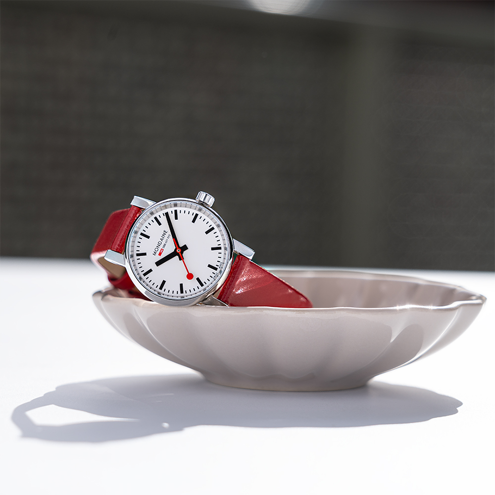 evo2系列腕錶是極簡主義設計和瑞士製錶工藝的完美體現。它代表著瑞士國家鐵路錶(Official Swiss Railway Watch)的與時俱進:保留自1986年初代Classic腕錶上的包浩斯風格,並加入了更為流線且有機的外觀。它圓弧且無縫式的錶殼線條優美且圓潤厚實,同時也能為佩戴者帶來極佳的舒適感。更貼合肌膚的人體工學下沈式錶耳、功能主義導向的齒輪造型錶冠、以及高透亮的防眩光藍寶石水晶鏡面,使得整隻腕錶質感優越,比例臻至完美。