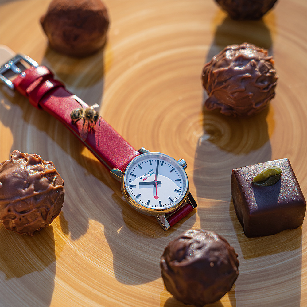 Mondaine鐘錶公司生產的所有手錶都在其位於瑞士比伯裡斯特的工廠使用高達 80% 的太陽能生產,成為瑞士第一個達成碳中和的錶廠,2022年也首度上市零殘忍的植物皮革錶帶。