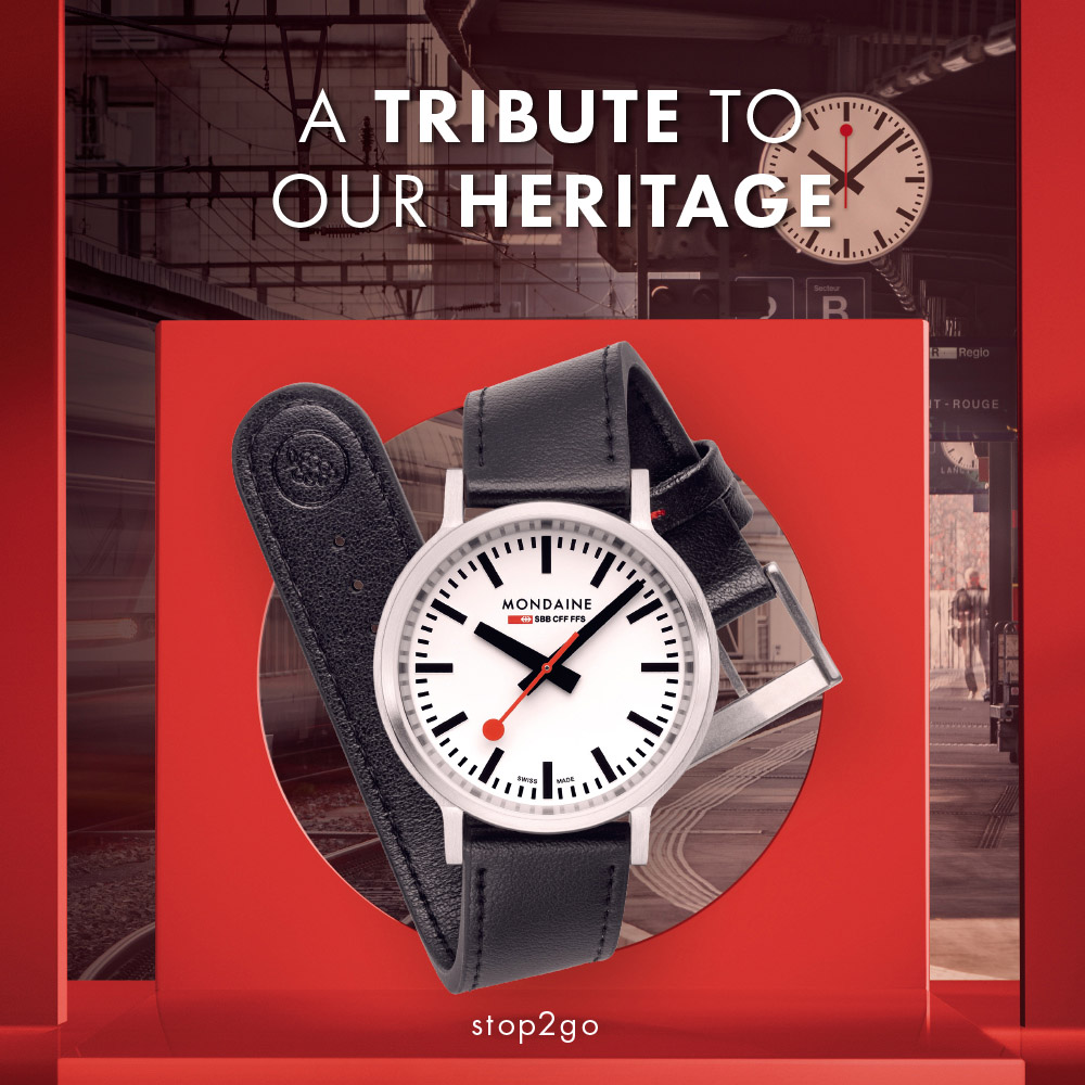 stop2go 系列不僅繼承了瑞士鐵路鐘的標誌性經典外觀設計,更搭載一枚獨特的機芯,能讓手錶展現與瑞士鐵路鐘相同的走法:紅色圓秒針以58 秒走完一圈,並在 12 點鐘等待 2 秒,與分針一起優雅地躍入下一分鐘。