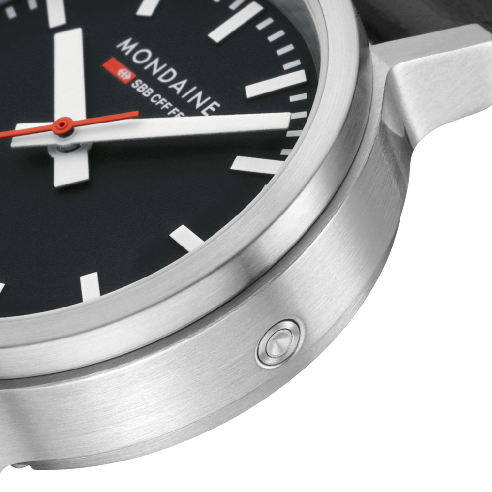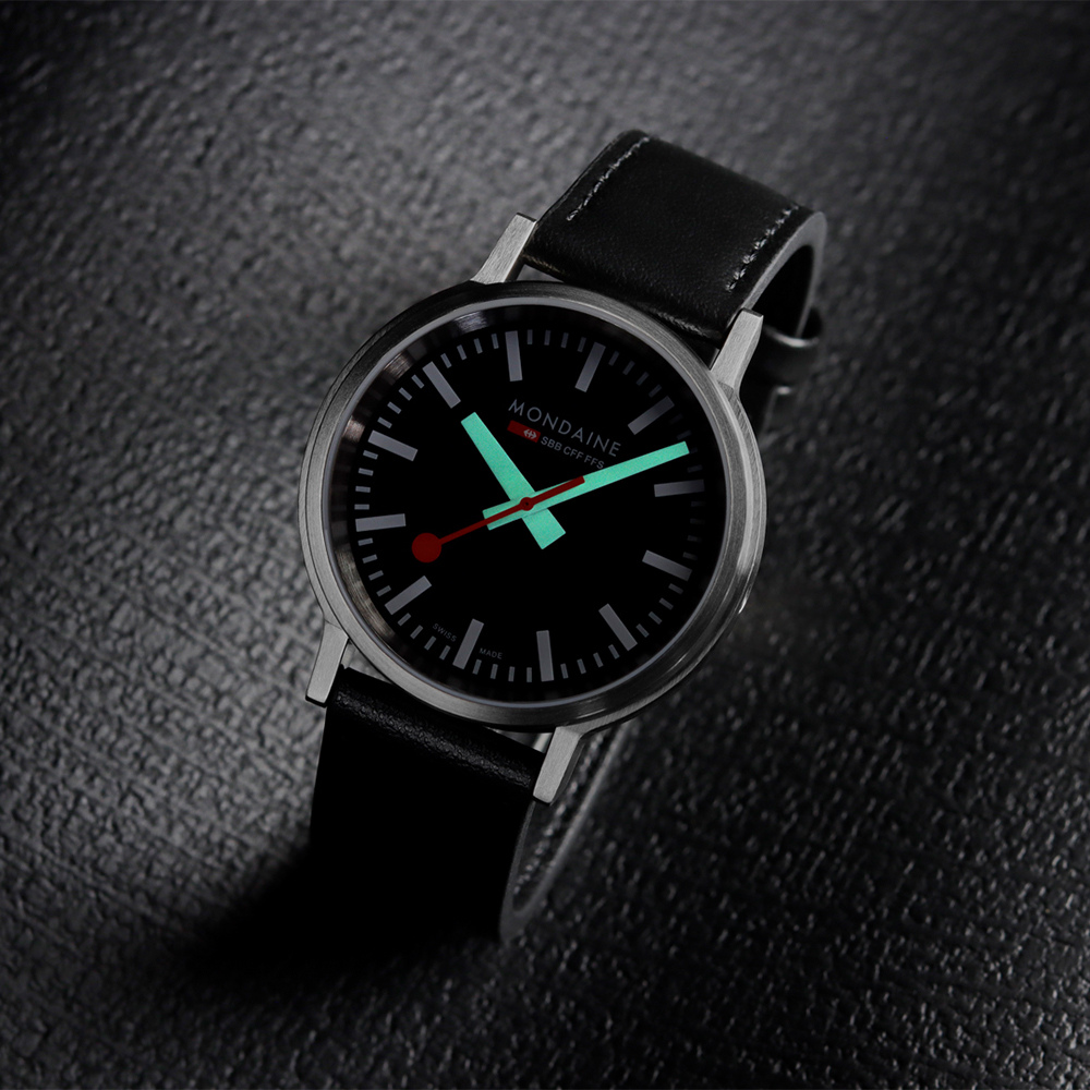 白色錶盤款式具備Backlight夜光指針- 這是 Mondaine 的註冊專利技術,它將SuperLuminova夜光塗料運用於時分指針的背面;而黑色錶盤款式則直接將SuperLuminova夜光塗料使用於指針上,這兩種設計都讓您能夠不分晝夜,清楚的辨別時間。