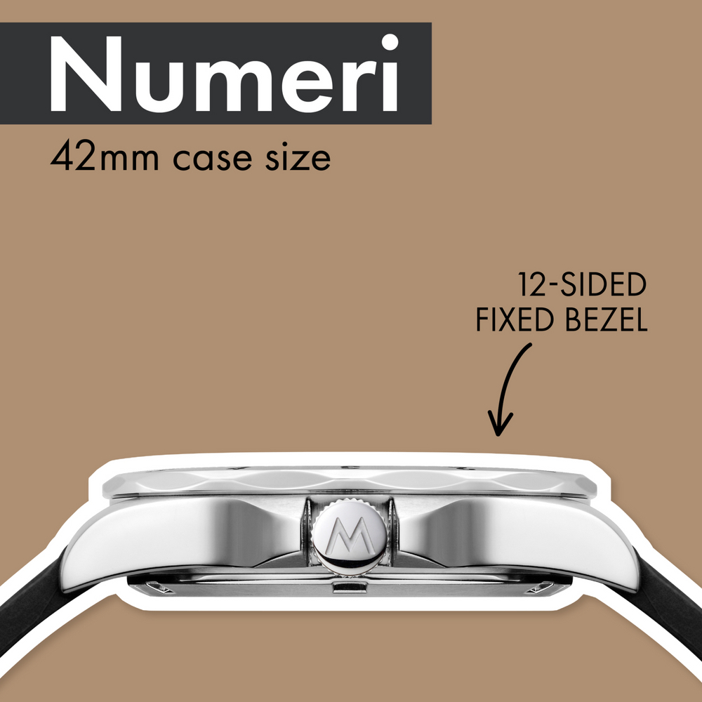 Numeri強調百搭與機能兼備,結合運動錶的堅固結構與國鐵一貫的極簡設計語彙,適合從辦公室到戶外各種情境佩戴。最吸睛的設計亮點即為12邊形的固定錶圈,錶圈上印有1至12的數字,這在 MONDAINE 歷來作品中尚屬首次。幾何切角設計增添視覺層次,搭配防眩鍍膜藍寶石水晶鏡片,不僅強化造型,也提升耐用性與實用性。錶冠刻有品牌標誌性「M」字樣,細節體現瑞士製錶工藝之美。