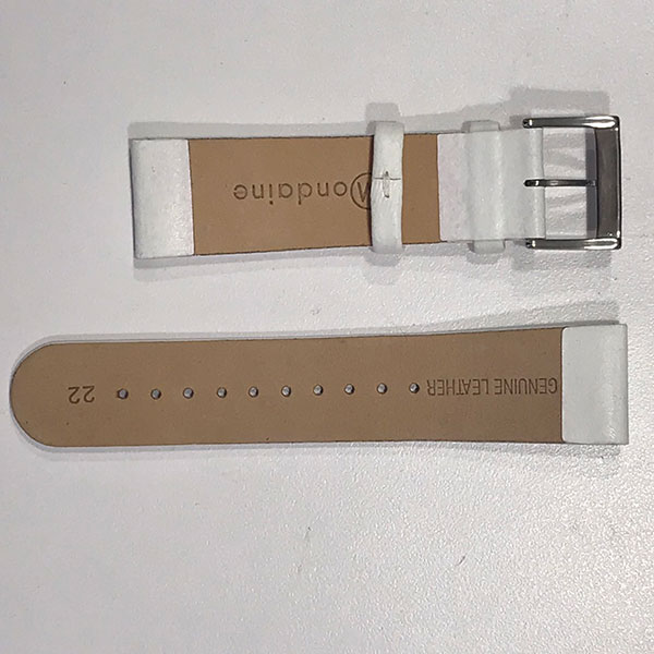 22mm 白色牛皮銀扣錶帶(非快拆)
