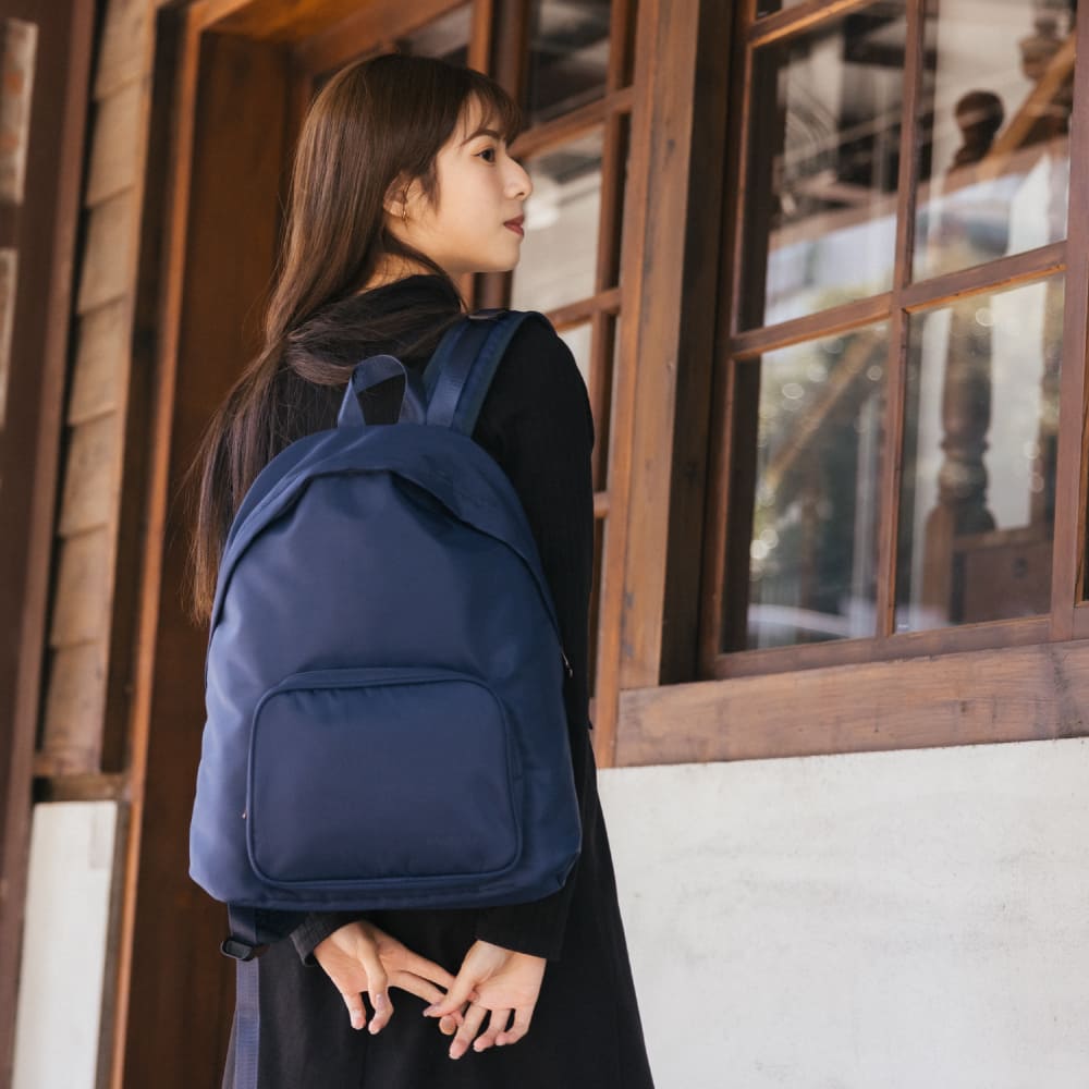 在包包正面有1個可擺放隨身小物的正面前口袋,包包內部則具有大約13L的大容量儲物空間,不論是文書資料或是輕便衣物,都能輕鬆放入。
