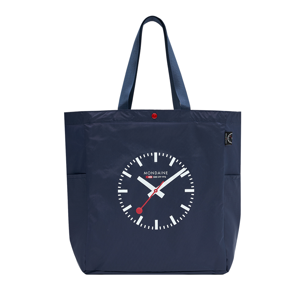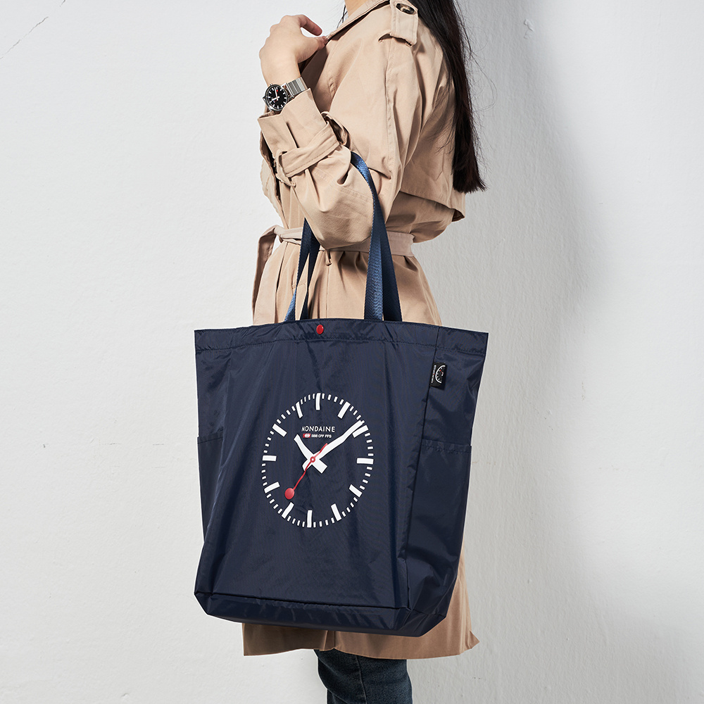 本款托特包提供 丹寧藍Denim Blue / 卡其色 Khaki / 橄欖綠 Olive Green 等3款簡約百搭的樣式選擇,點綴經典的瑞士鐵路鐘圖騰和80週年紀念小織標,令人愛不釋手!