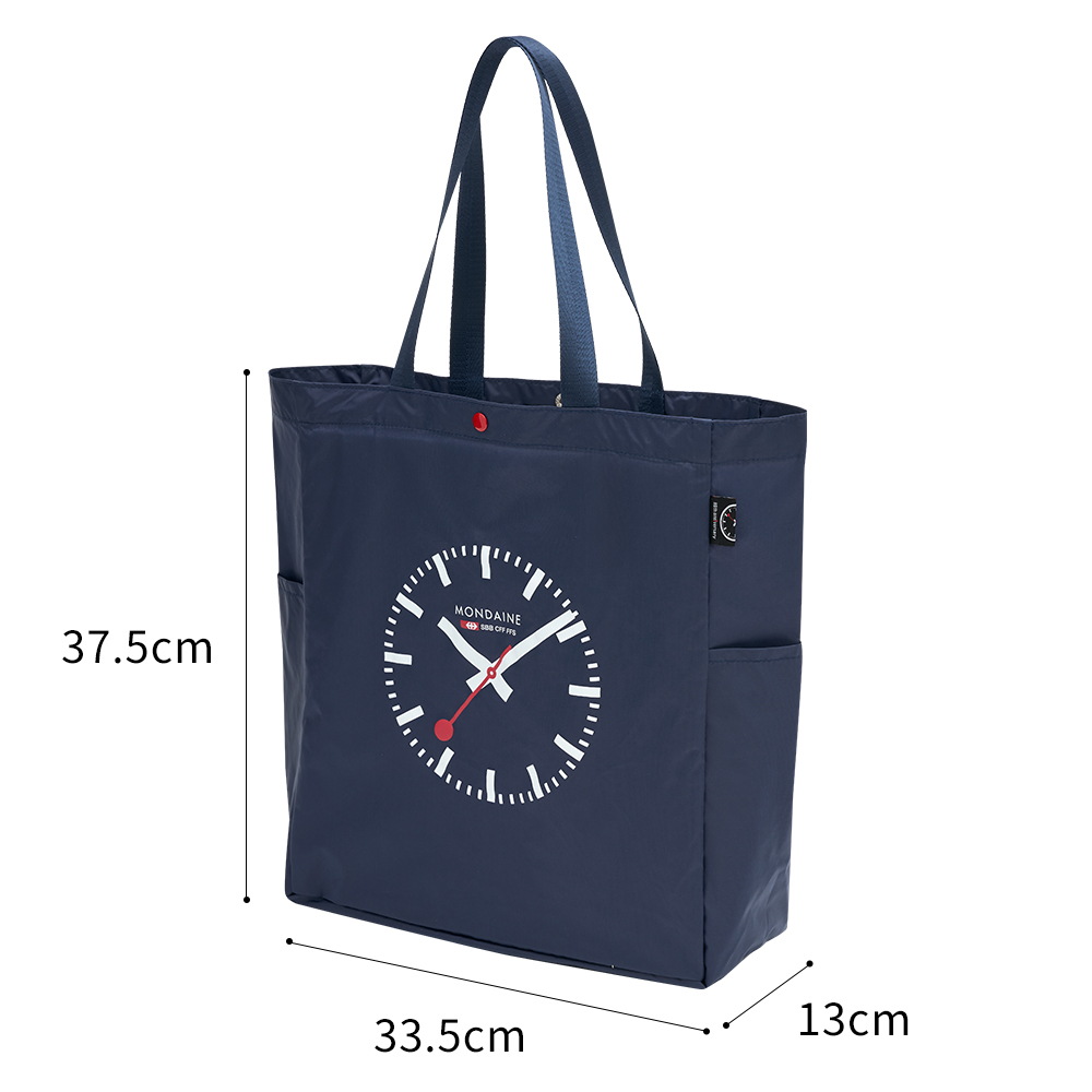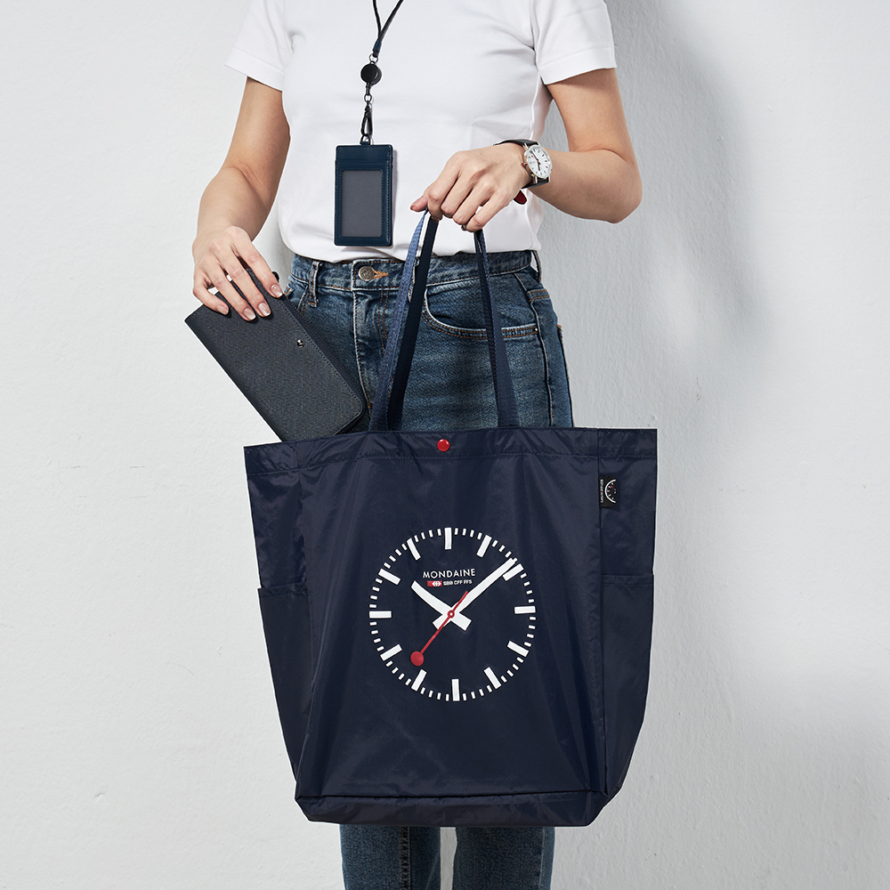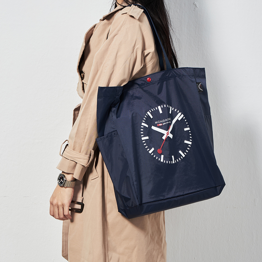 本款托特包提供 丹寧藍Denim Blue / 卡其色 Khaki / 橄欖綠 Olive Green 等3款簡約百搭的樣式選擇,點綴經典的瑞士鐵路鐘圖騰和80週年紀念小織標,令人愛不釋手!