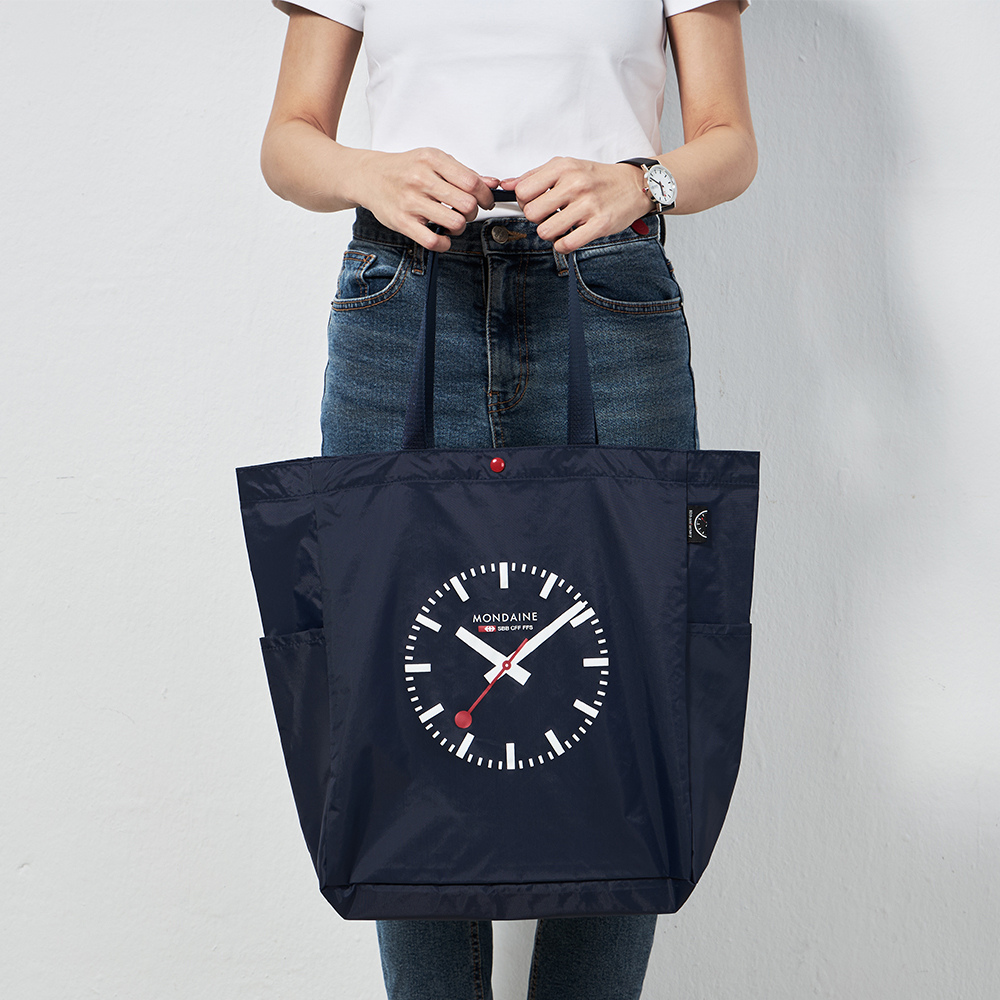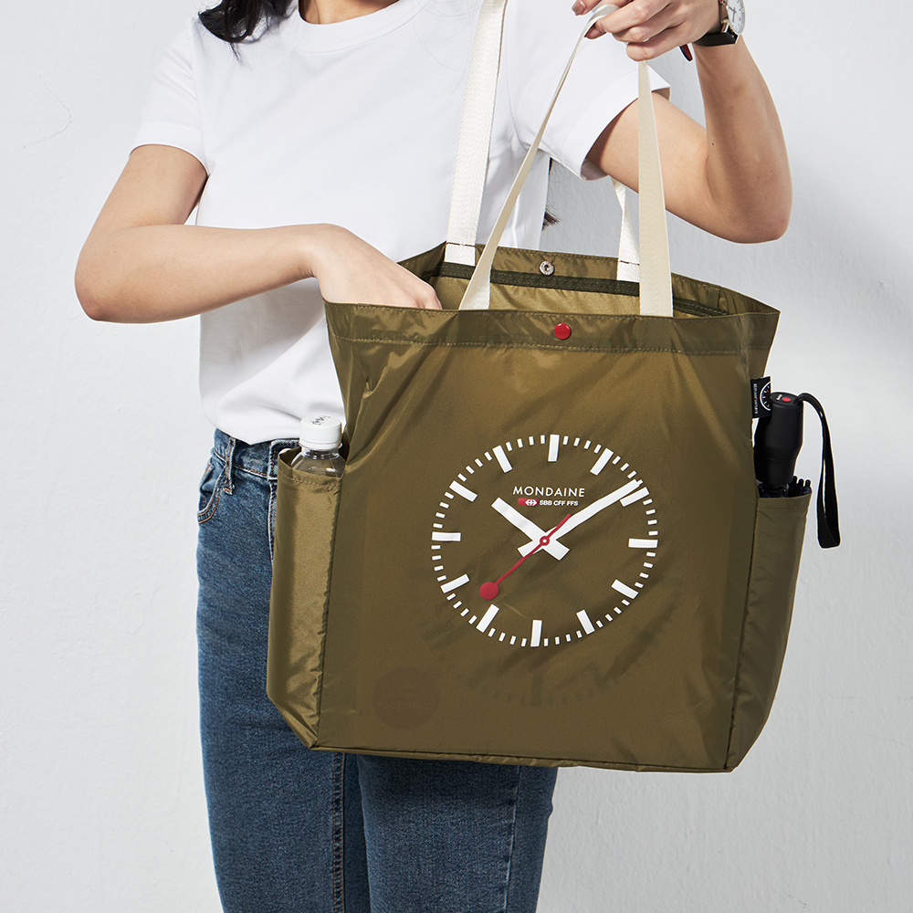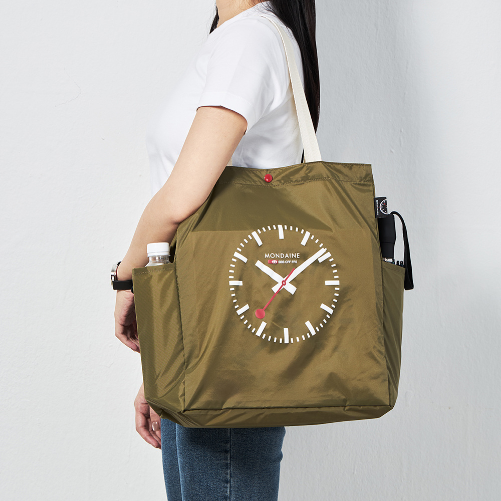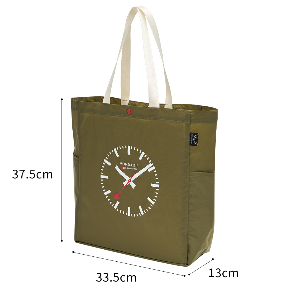 本款托特包提供 丹寧藍Denim Blue / 卡其色 Khaki / 橄欖綠 Olive Green / 熱紅酒Wine Red / 經典黑 Classic Black等5款簡約百搭的樣式選擇,點綴經典的瑞士鐵路鐘圖騰和80週年紀念小織標,令人愛不釋手!