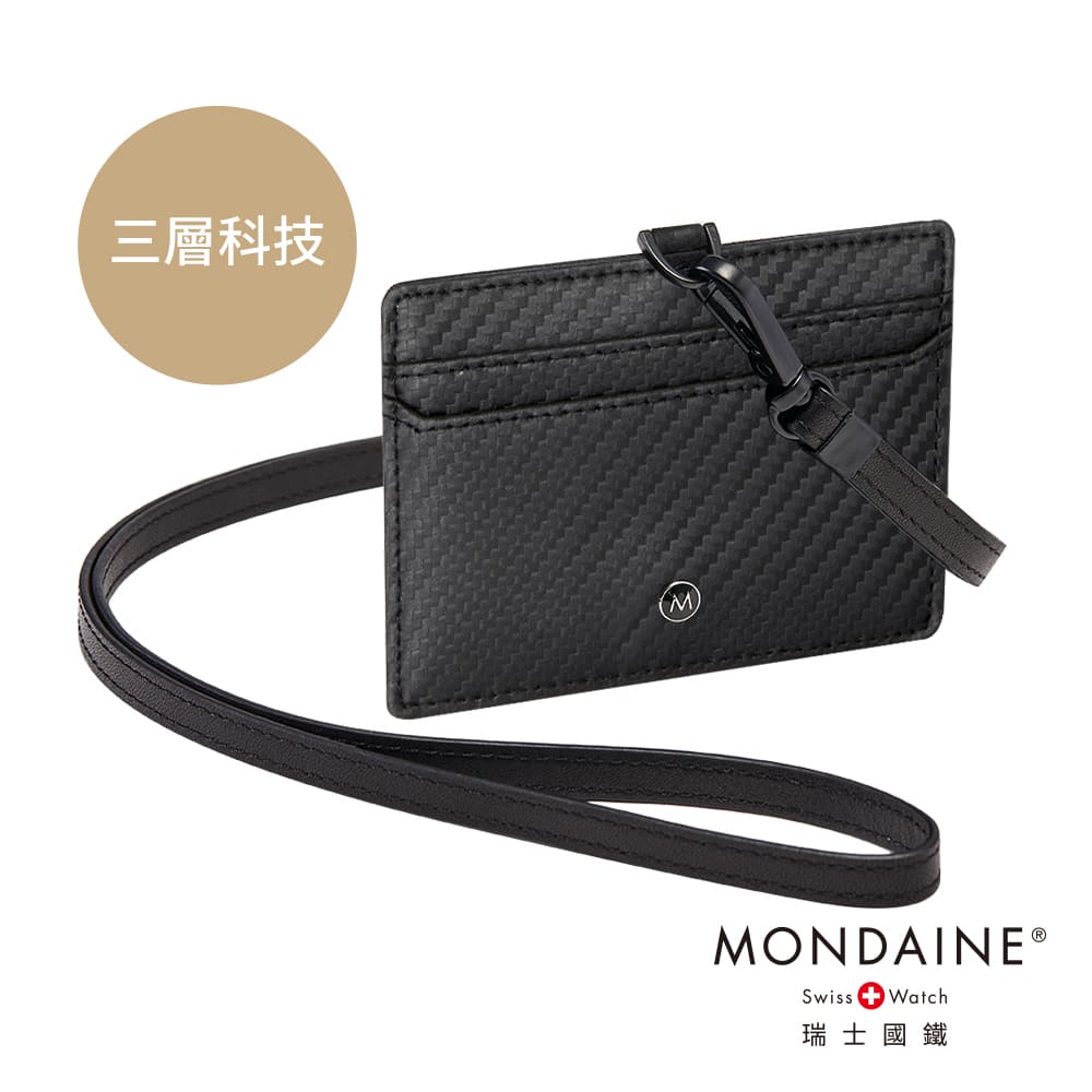 MONDAINE 瑞士國鐵商務橫式證件套 碳纖維黑款,將純正牛皮與碳纖維紋理完美結合,呈現出低調奢華的科技美感。橫式設計兼具 穩重與實用性,適合各種商務場景,為您的職場形象增添專業氣息。
