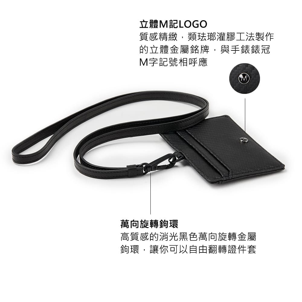 搭載 360° 萬向旋轉鉤環,讓證件套可輕鬆調整角度,不論直掛、側掛皆能靈活運用。不論是搭配 頸繩、登山扣或是腰帶,都能輕鬆連接,滿足不同使用需求。